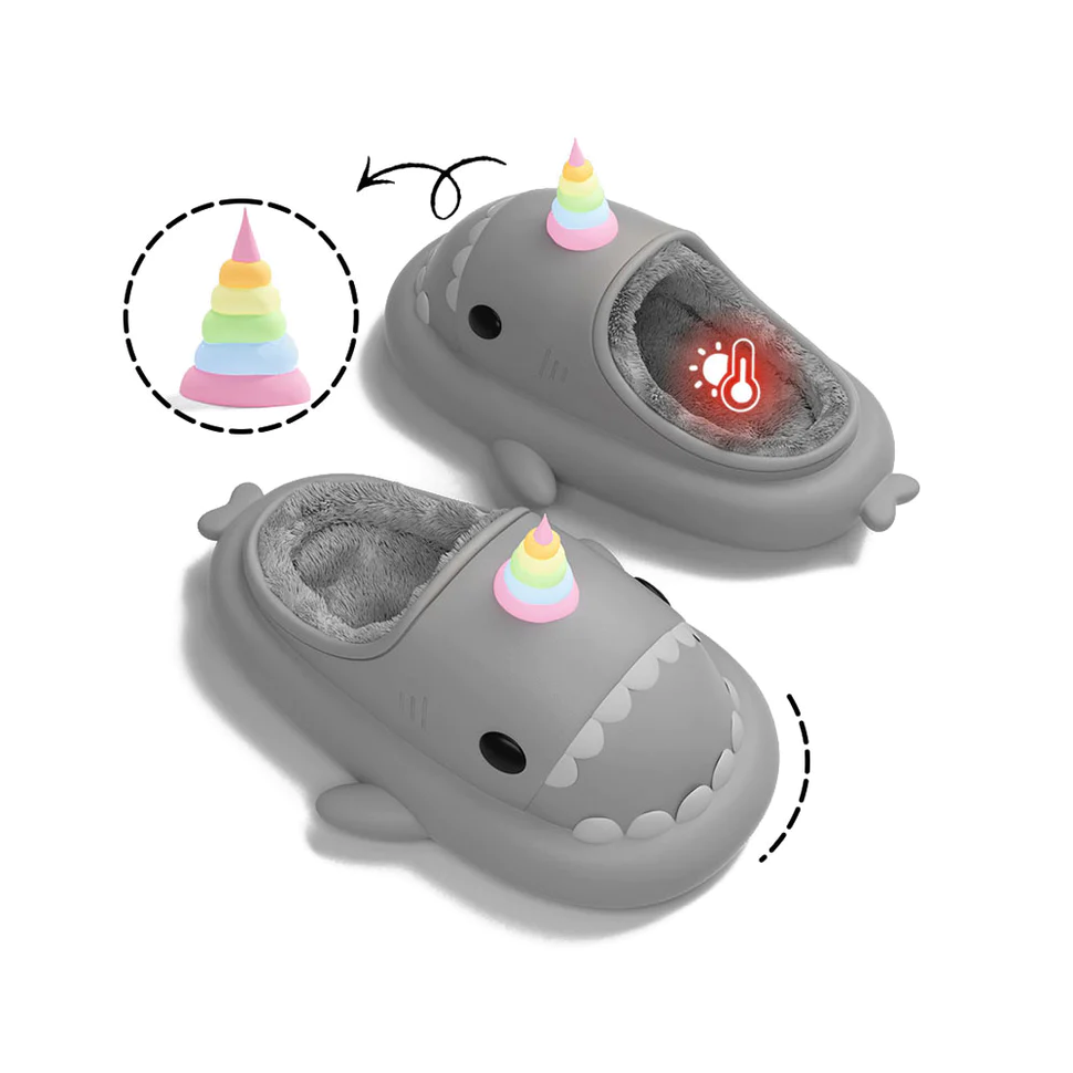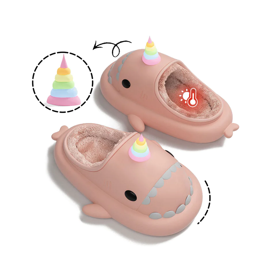 Shark Slides Winter – Unicorn Lined Slippers Heel-open