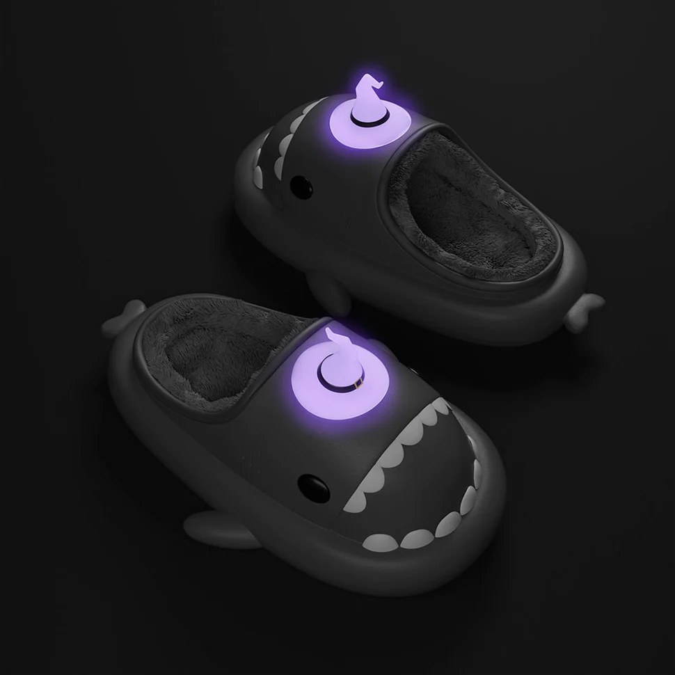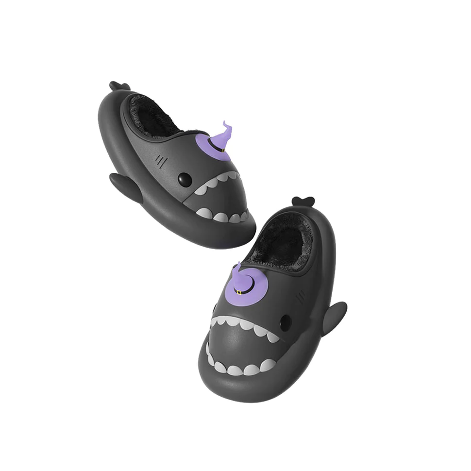 Shark Slides Winter – Witch Hat Lined Slippers Heel-open